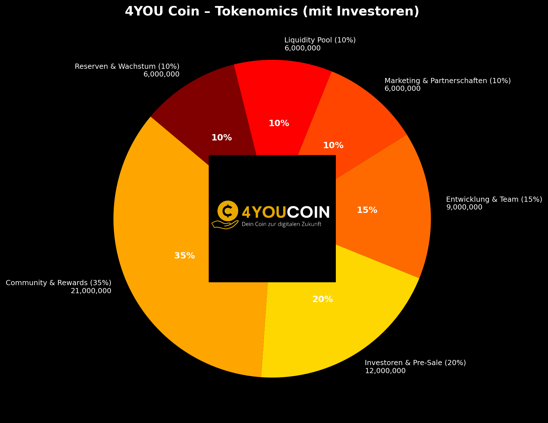 (Hier würde dein Logo im Mittelpunkt einer runden Grafik mit den Tokenomics-Anteilen stehen – sehr professionell für Investoren)